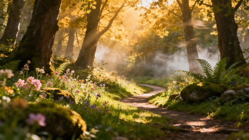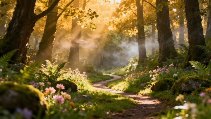 阳光森林小径迷人梦幻