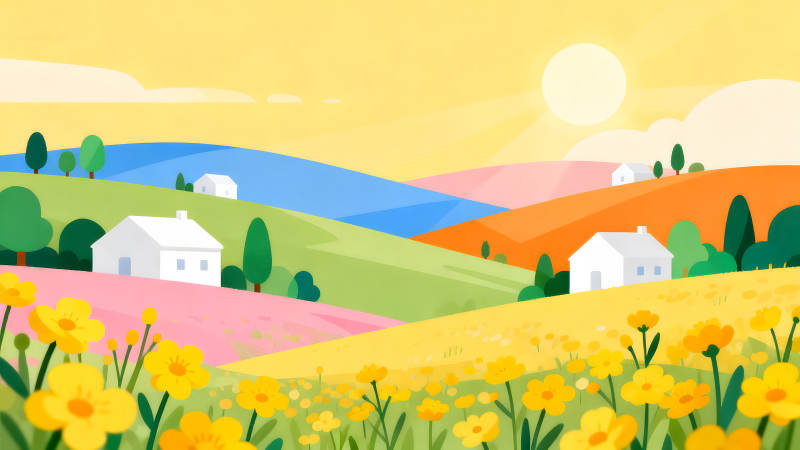 田园风光阳光明媚房屋花朵