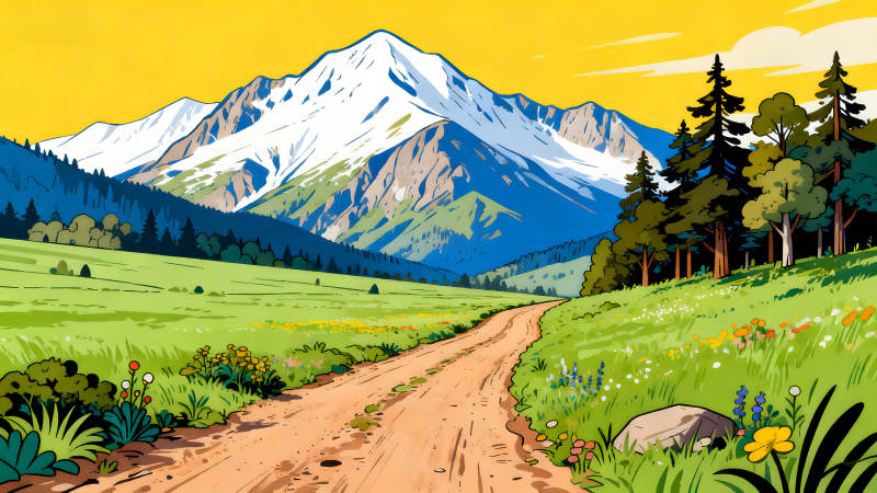山间小路风景画阳光明媚景色宜人