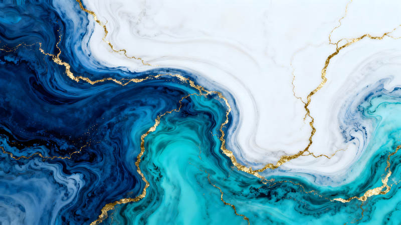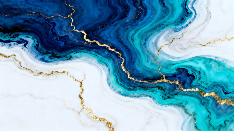 蓝色与金色的抽象水墨画