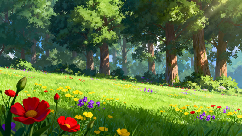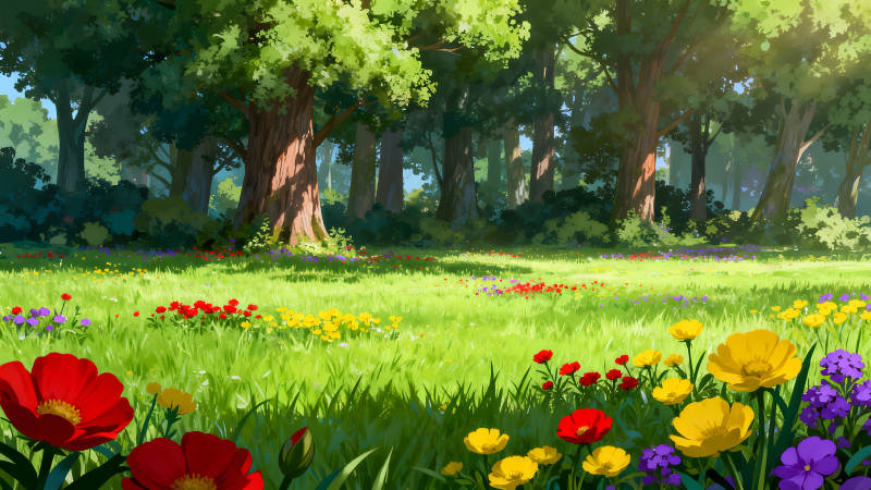 葱郁森林与繁花绿草的美丽画卷