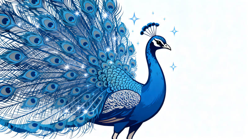 蓝孔雀开屏展示美丽羽毛
