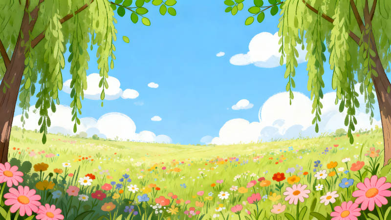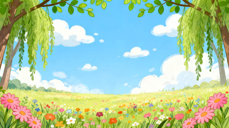 田园风光树木青草阳光明媚鲜花盛开