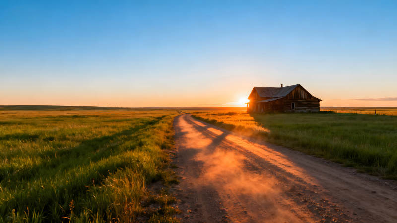 落日余晖下的乡村小路