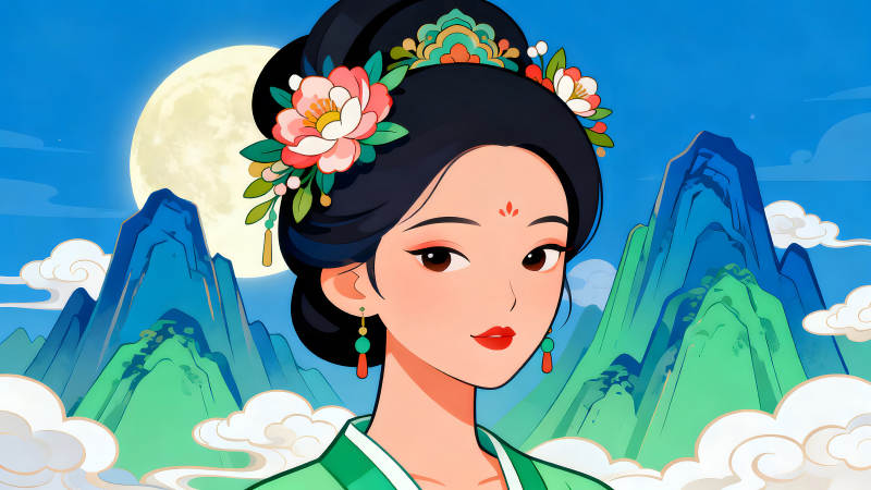 东方美人赏月图
