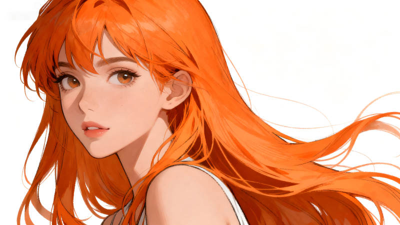 动漫女孩橙色长发特写