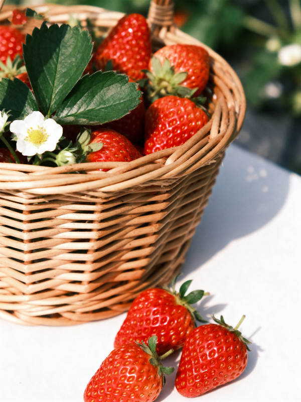 新鲜草莓与藤编篮子