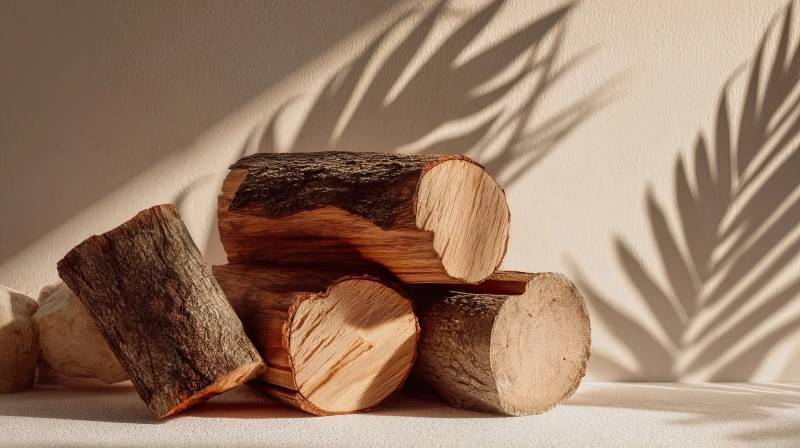 光影下的木桩静物构图