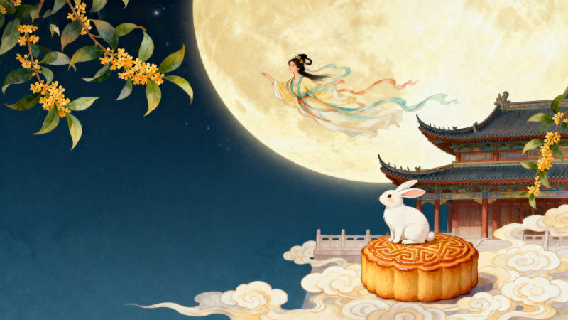 中秋月圆嫦娥玉兔月饼