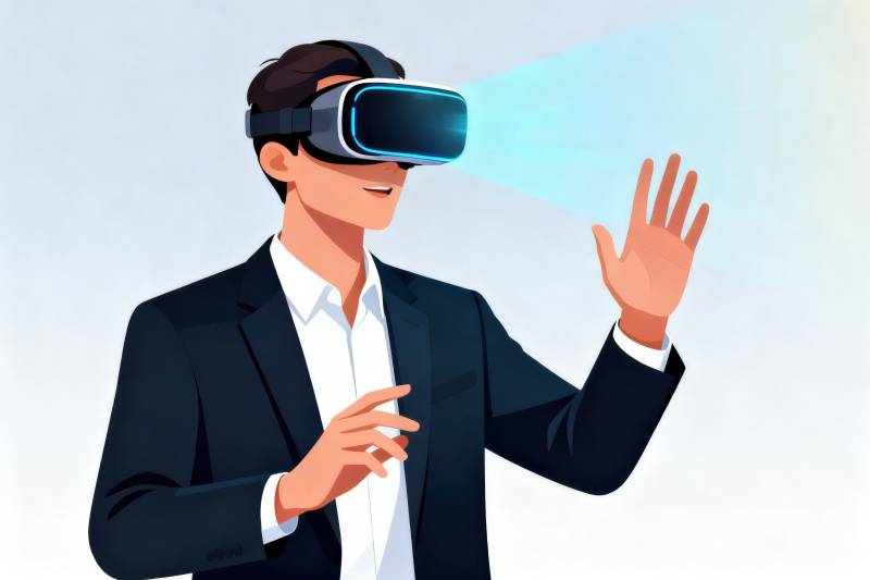 商务人士体验虚拟现实科技