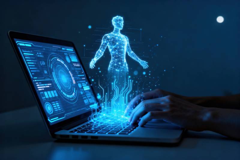 科技虚拟人与笔记本电脑交互
