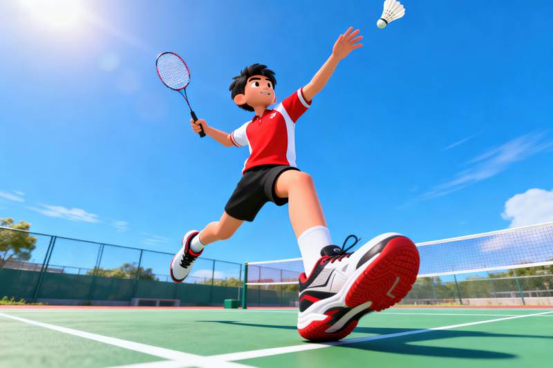 阳光下打羽毛球的少年