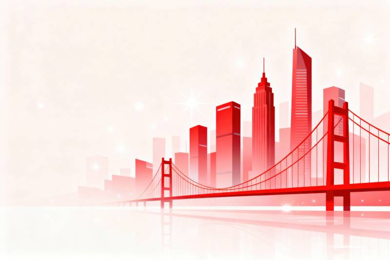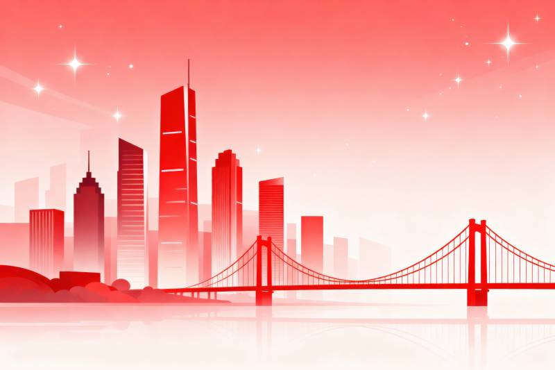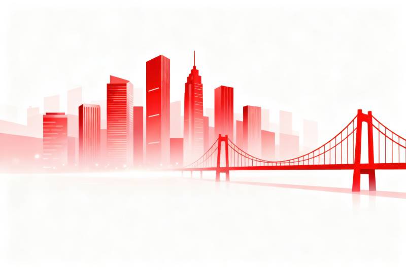 红色城市天际线与桥梁