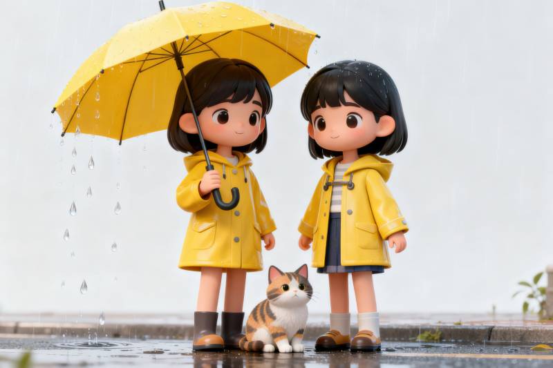 雨中女孩与猫咪