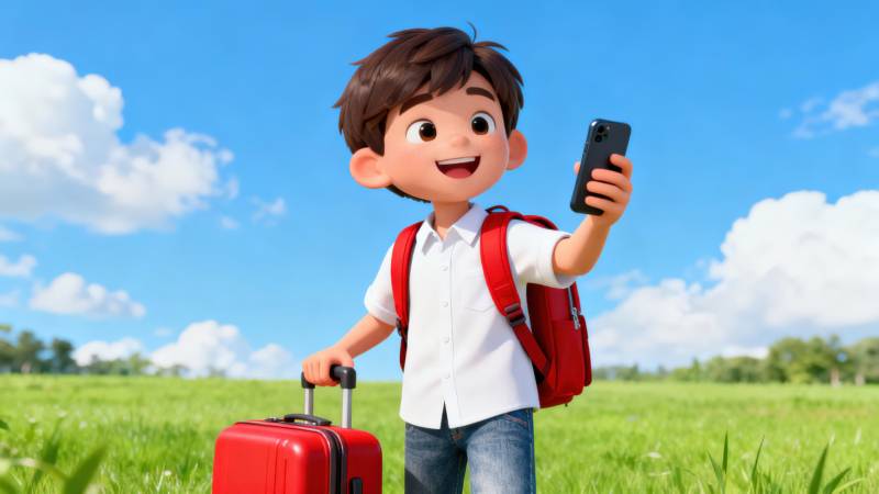 小男孩旅行看手机