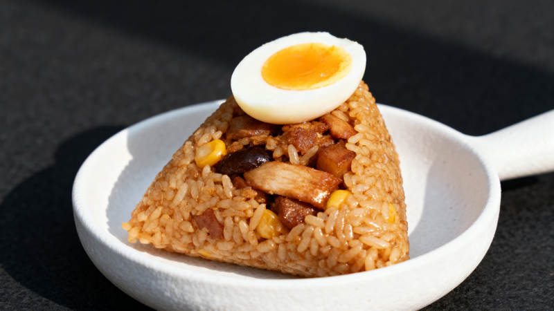 卤肉饭团配温泉蛋
