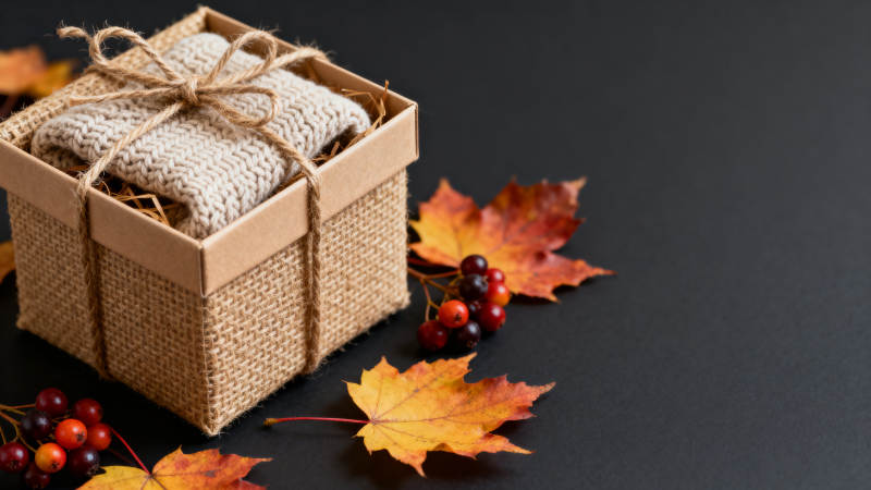 秋季礼物盒与枫叶装饰