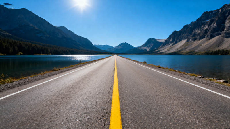 公路延伸向远方的湖泊与山脉