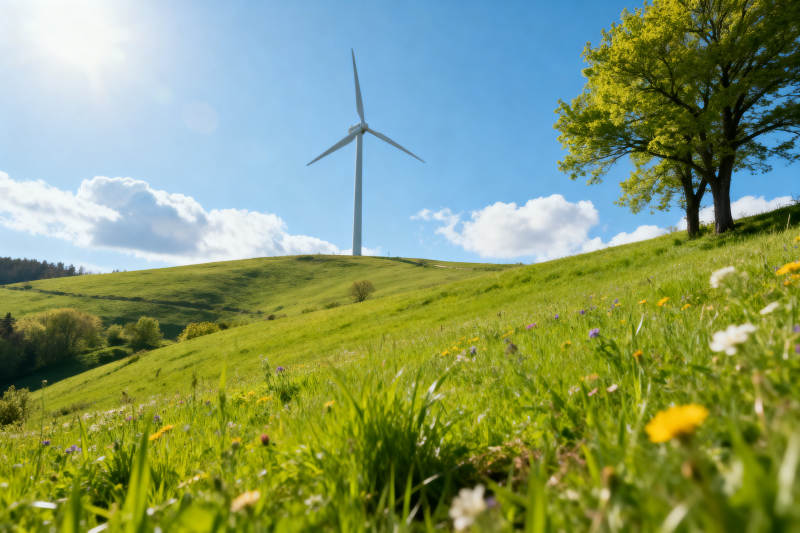 风力发电机绿色山坡