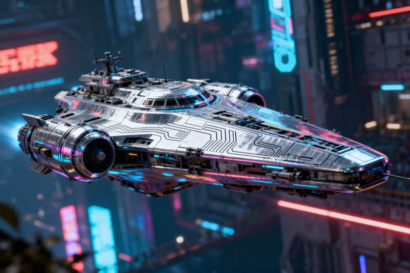 赛博朋克风格飞船飞行
