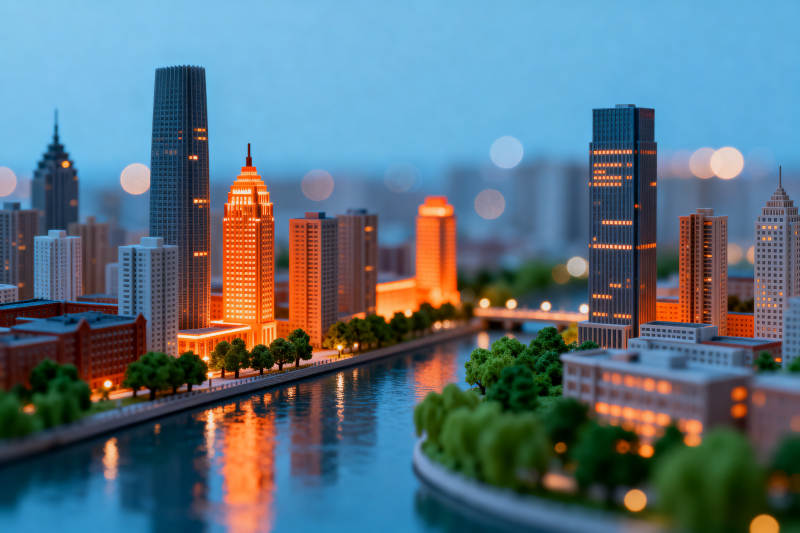 城市模型夜景灯光