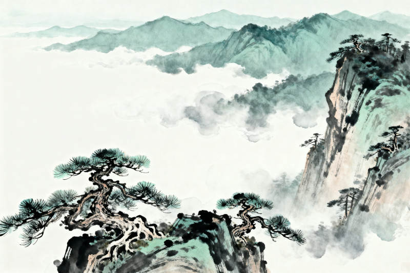 水墨山水云松图