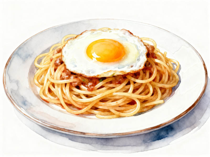 意面配煎蛋的美味早餐