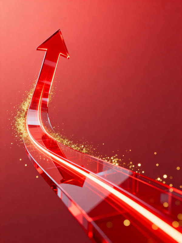 红色上升箭头寓意增长