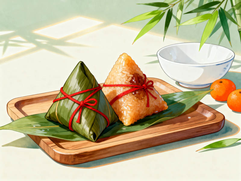 端午节粽子与红枣茶