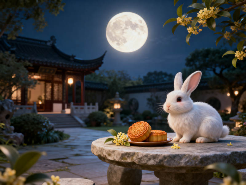 中秋月夜玉兔与月饼
