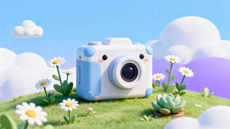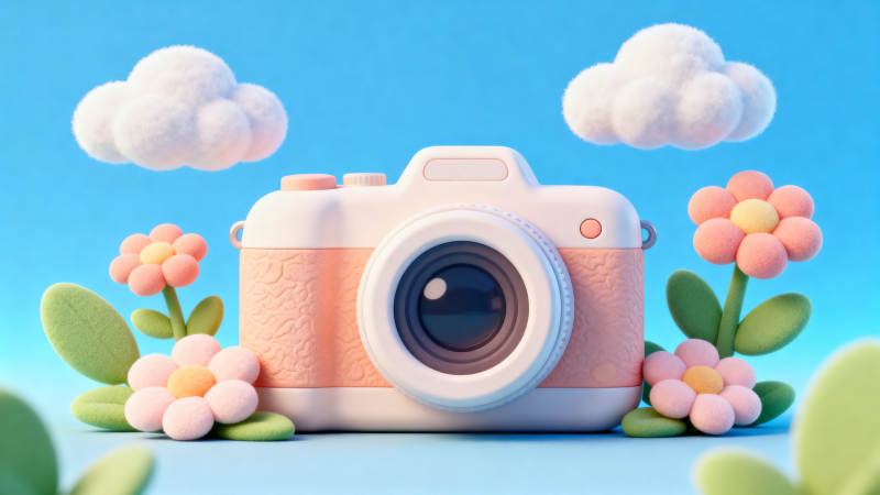 卡通相机与花朵云朵