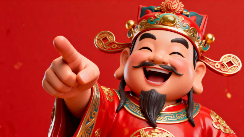 财神爷指向前方送祝福