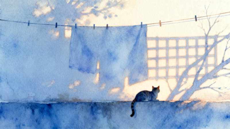 猫咪与晾晒的衣物