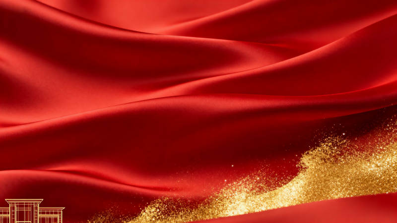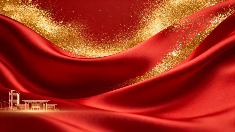 红色绸缎金色建筑背景