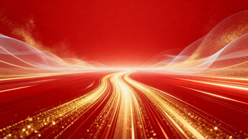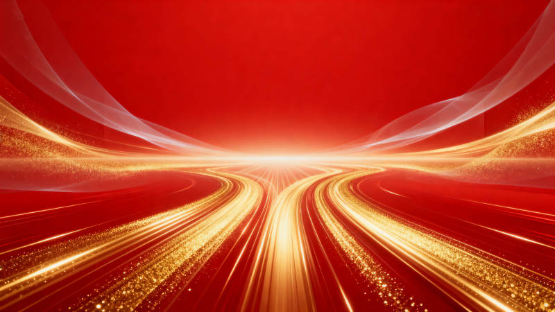 金色光轨红色背景抽象画面