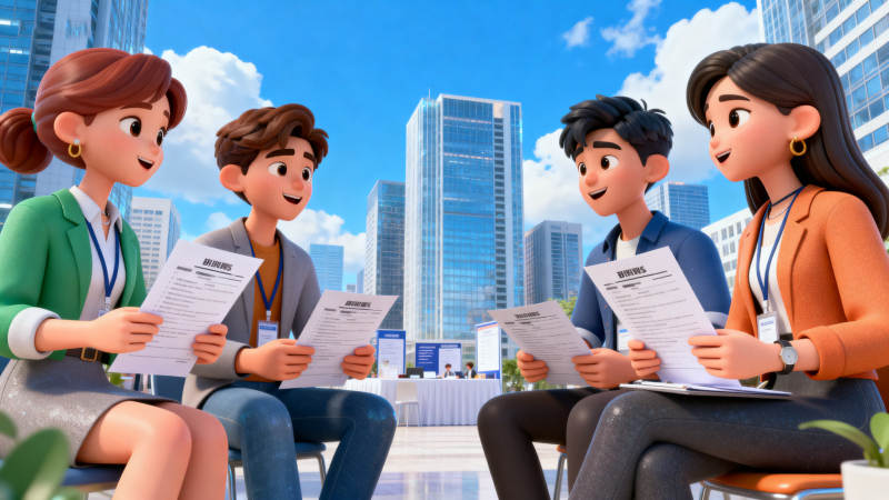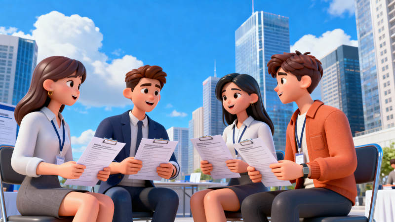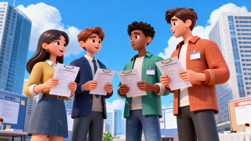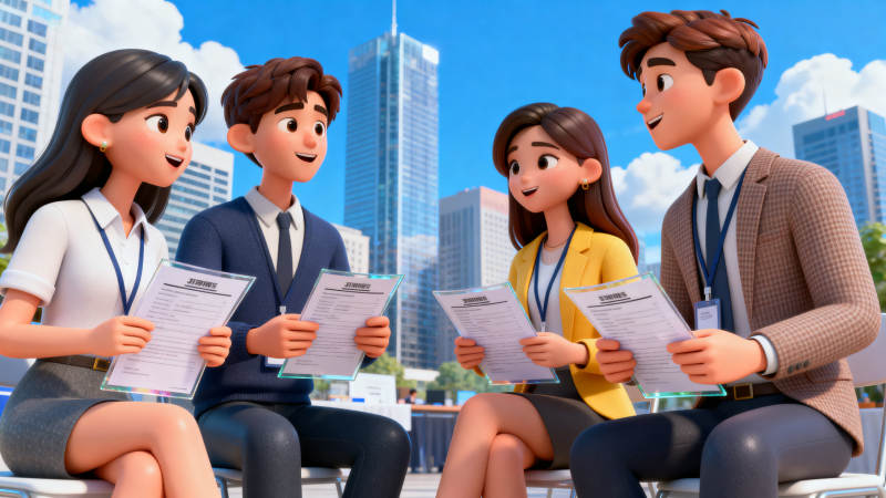 招聘现场交流简历