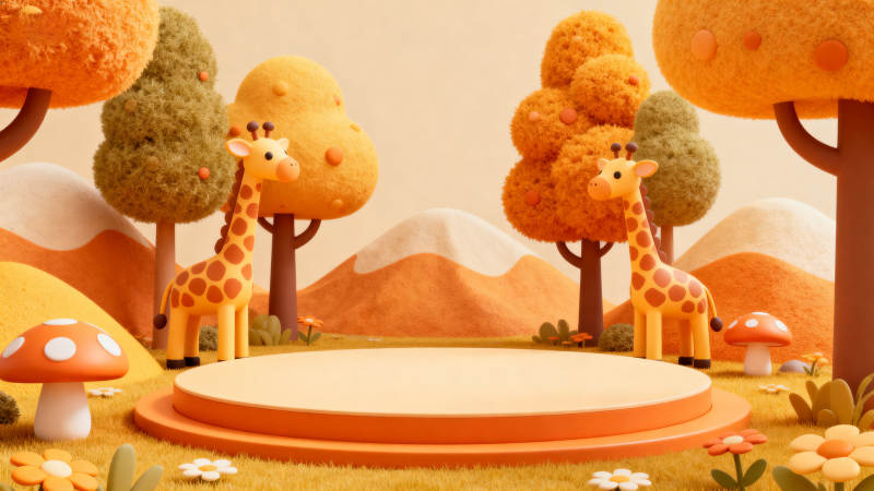长颈鹿卡通森林场景