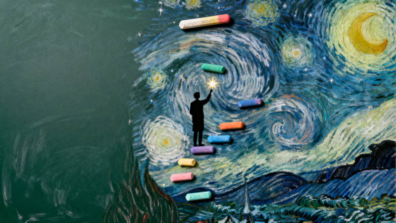 星空梯子与粉笔创意画