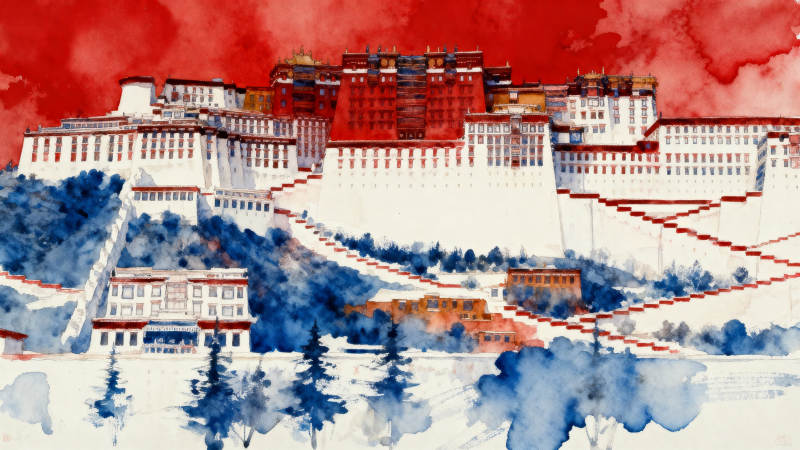布达拉宫水彩艺术
