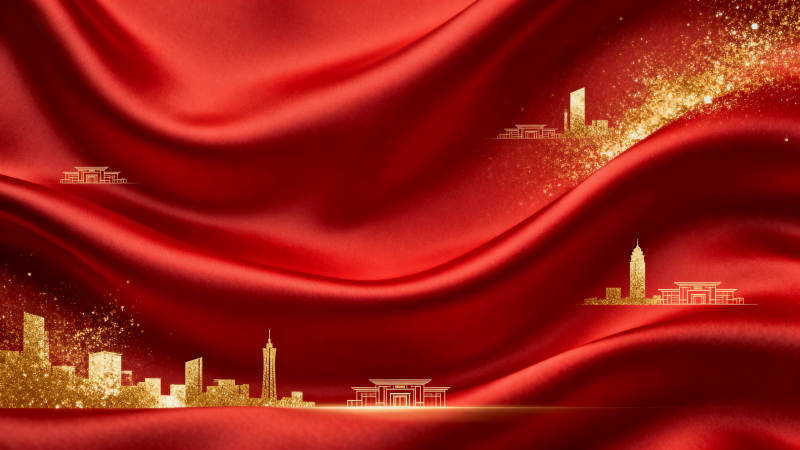 红色绸缎城市剪影背景