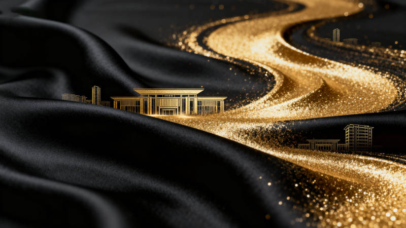 红色绸缎与金色粒子背景