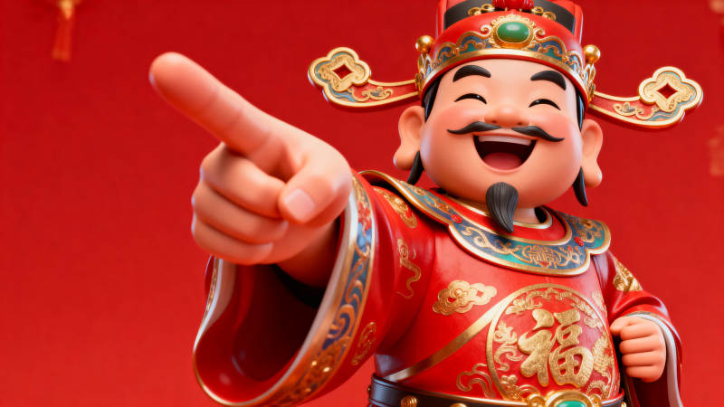 财神爷指向前方送祝福
