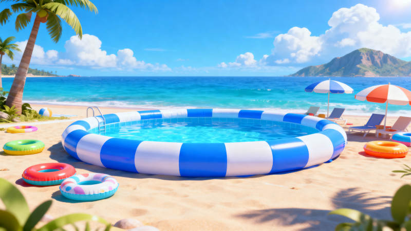 沙滩充气泳池夏日度假