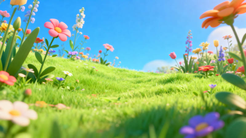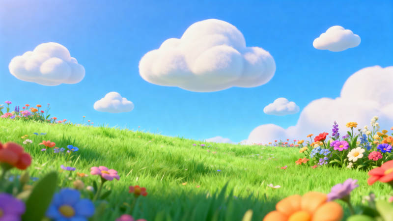 蓝天白云草地花海
