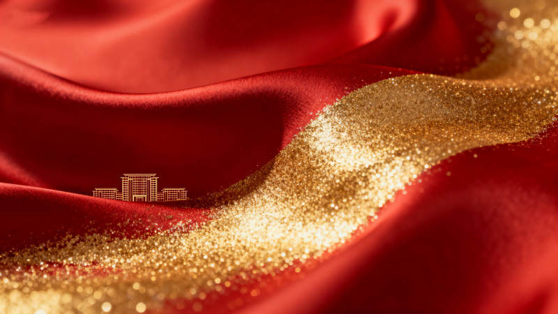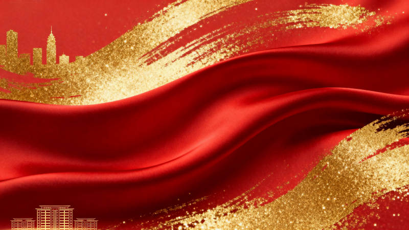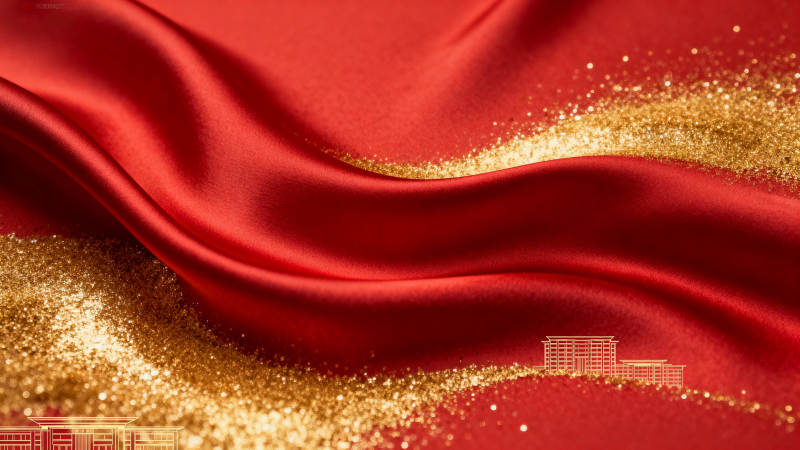 红色绸缎与金色背景