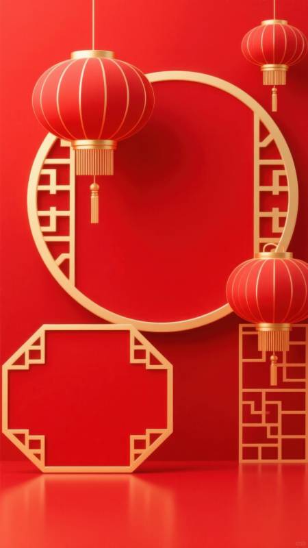 红色背景中国风灯笼装饰