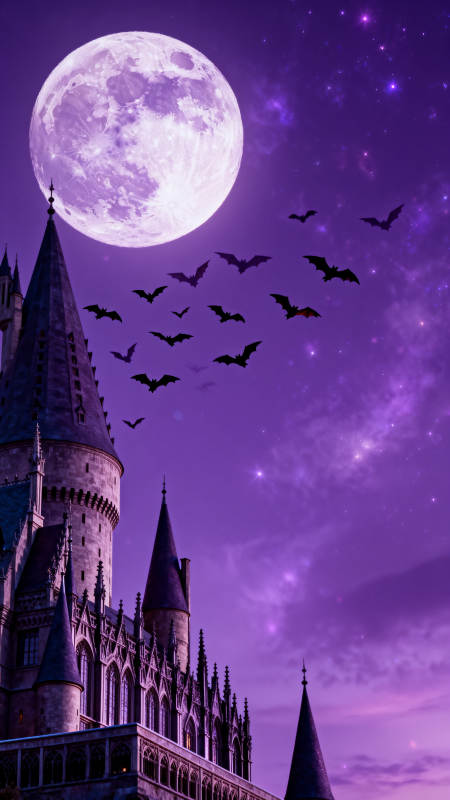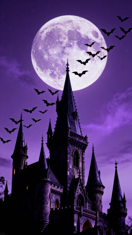 紫色月夜古堡与飞 bat