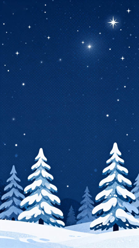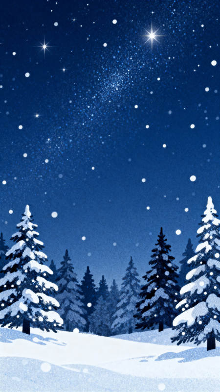 雪夜松树星空美景