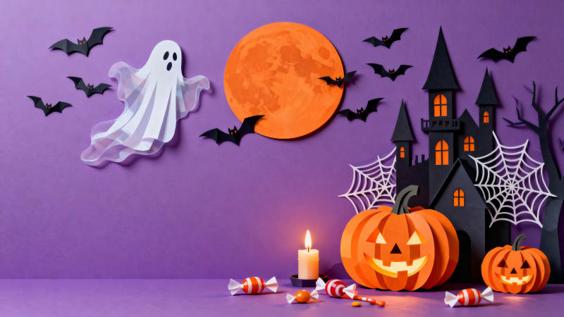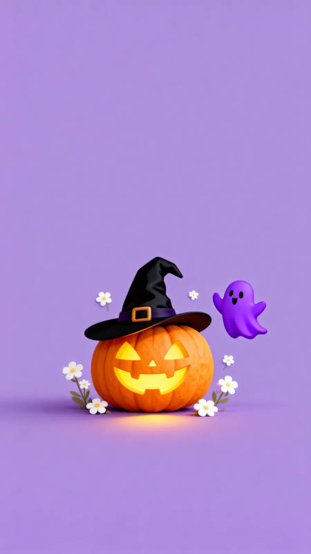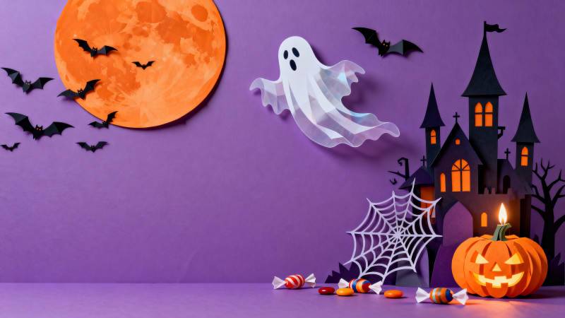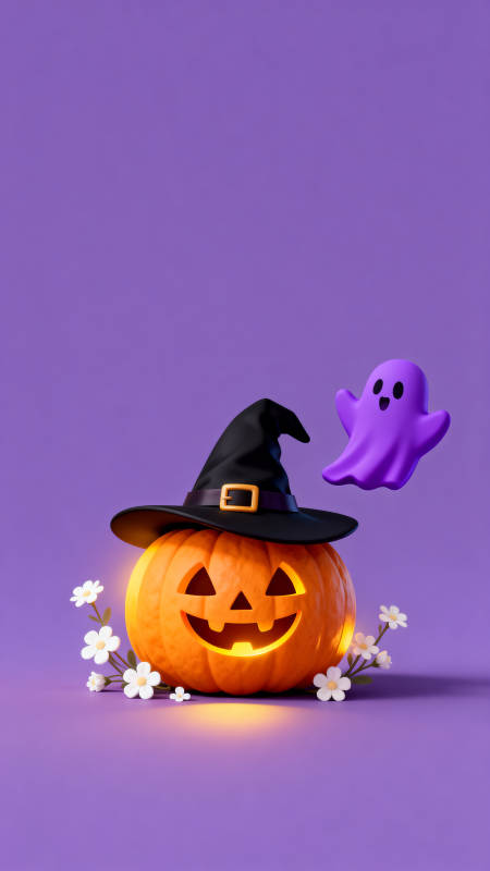 万圣节南瓜灯与紫色幽灵
