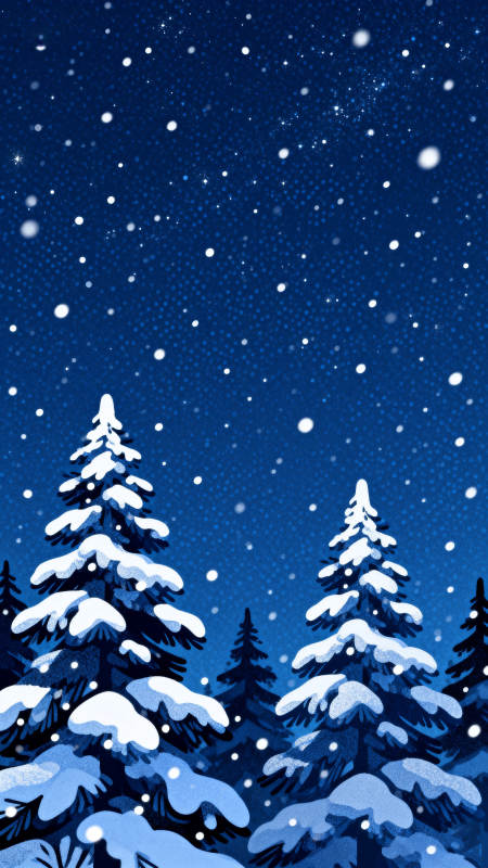 雪夜松林冬日雪景